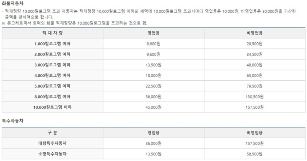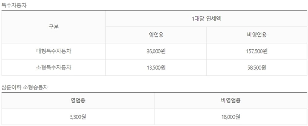 아래는 차종별 세금을 정리한 표이니 참고하시기 바랍니다.