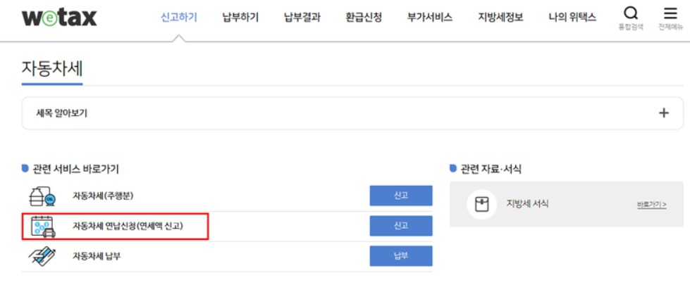 연납 신청을 하기 위해서는 위택스 홈페이지를 이용하면 되는데요, 알려 드린 방식을 보면 어렵지 않게 신청하실 수 있습니다.