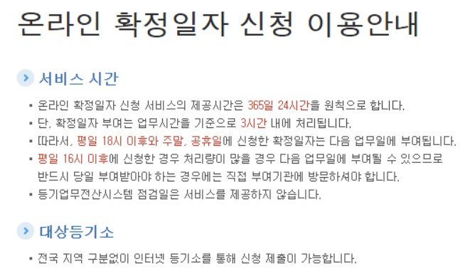 다만 온라인으로 확정일자를 받는것도 신청 가능 시간이 있습니다.