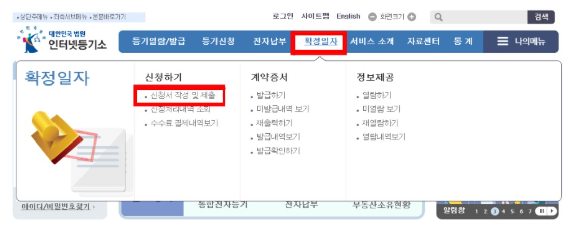확정일자를 방문해서 받을 수 없는 분들은 온라인등기소를 이용할 수 있습니다.