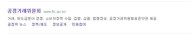 여기서는 공정거래위원회 홈페이지를 이용할 예정인데요, 검색 포털이나 아래 링크를 이용해서 공정거래위원회 홈페이지에 들어갑니다.