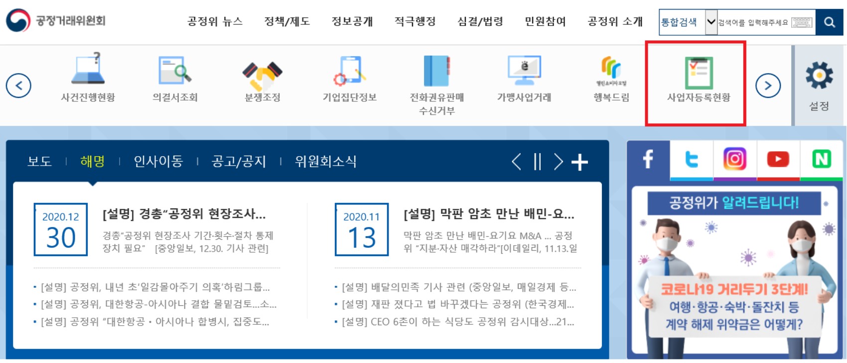 하나는 국세청 홈텍스로 들어가는 방법이고 또 하나는 공정거래위원회를 이용하는 방법입니다.