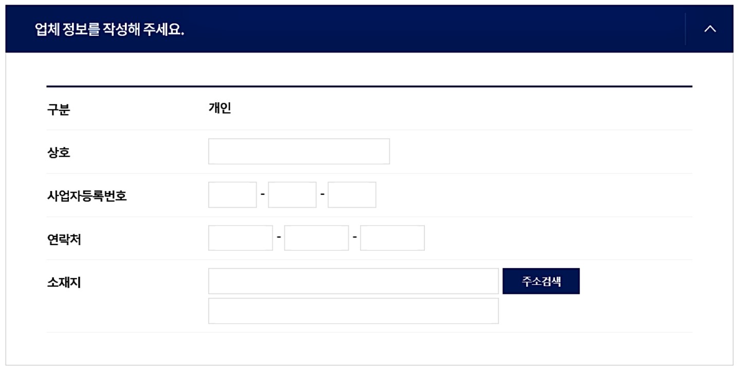 작성해야 하는 내용이나 체크 해야 하는 내용은 빼놓지 말고 꼼꼼하게 작성합니다. 작성해야 돼 대부분의 내용은 개인 정보나 사업자 등록증에 나와 있는 정보이기 때문에 쉽게 작성할 수 있습니다.