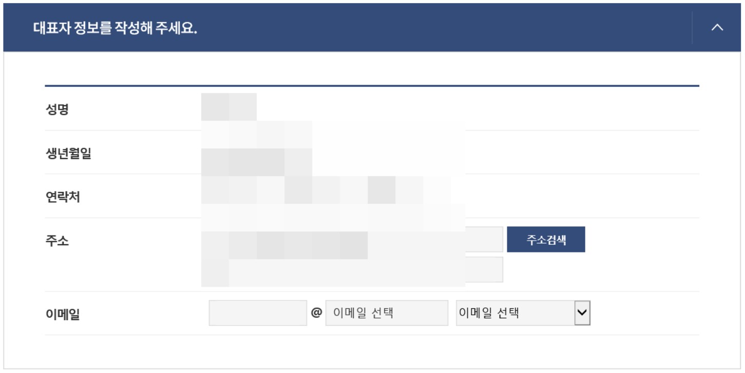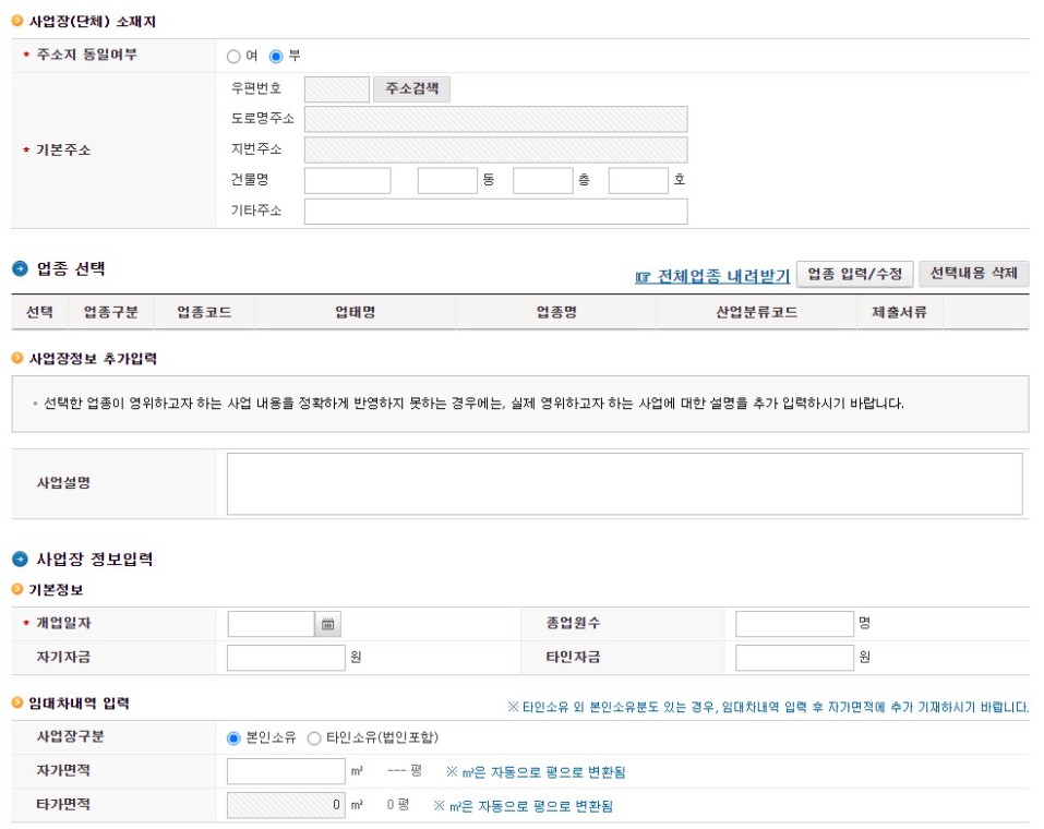 작성해야 하는 내용이나 체크 해야 하는 내용은 빼놓지 말고 꼼꼼하게 작성합니다. 작성해야 돼 대부분의 내용은 개인 정보나 사업자 등록증에 나와 있는 정보이기 때문에 쉽게 작성할 수 있습니다.