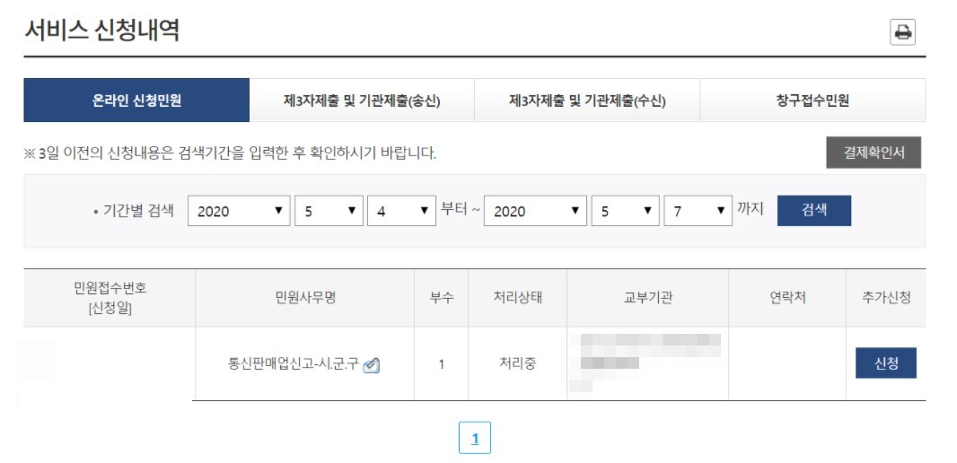 이와 같이 민원안내 및 신청 화면으로 넘어갑니다. 통신판매업 신고는 수수료가 별도로 발생하지는 않으며 신고한 다음 처리가 되면 마무리가 되기 때문에 어렵지 않게 진행할 수 있습니다.