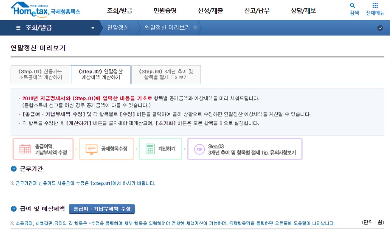 여기서 정확한 세금을 계산하여 실제 소득보다 세금을 더 많이 냈다면 돌려받고 적게 했다면 세금을 추가로 납부합니다.